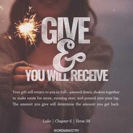 Give and you will receive. I've found this to be so true in my life . When you give generously of your time, talents, or resources to help others, it comes back to you in unexpected ways.