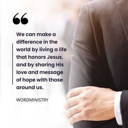 We can make a difference in the world by living a life that honors Jesus, and by sharing His love and message of hope with those around us.